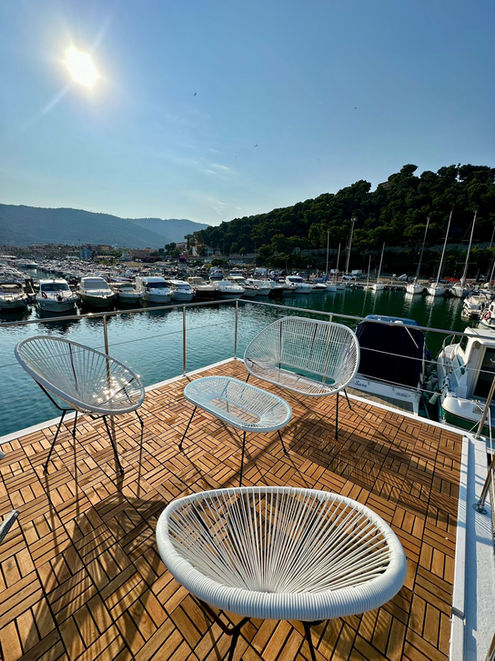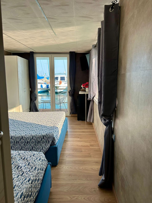 Ormeggiata nel suggestivo Porto di Andora (SV), la nostra casa galleggiante ti accoglie con ambienti raffinati, comfort moderni e dettagli pensati per il tuo relax. Ogni elemento è stato studiato per offrirti la sensazione di essere sospeso tra mare e cielo, lontano dal rumore del mondo.